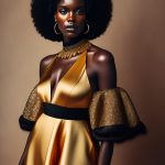 Pour accentuer les motifs géométriques de votre tenue, choisissez des teintes de maquillage qui complètent les couleurs de votre robe. Les nuances métalliques ou les tons neutres peuvent offrir un contraste subtil et élégant. Par exemple, un fard à paupières doré ou argenté peut mettre en valeur les lignes épurées de votre robe.
